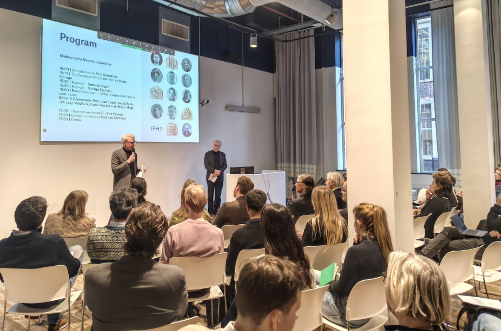 A special thanks goes to our speakers; Marja Elsinga (TU Delft) , Marja Elsinga (TU Delft), Martijn Eskinasi (Ministry of Housing and Spatial Planning), panel members; Robin van Leijen (AEDES/ Housing Europe), Sarah Rach (The Hague), Jan Jaap Veldhuis (IPO) and Hadi El Hage (European Cultural Centre), reactors; Esther Agricola (BPD), Erik Pasveer (Amsterdam) and Dick van Gameren (TU Delft/Mecanno), moderators, Maurits Schaafsma (Haarlemmermeer/ IFHP) and hosts for sharing their expertise and experiences.